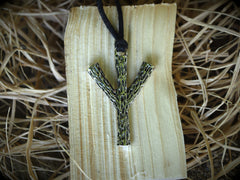 Diese Halskette ist ein echter „Hingucker“ auf allen Mittelalterfesten oder Wikingertreffen. Der Anhänger ist aus legiertem Zink gefertigt, hierbei wurde bewusst auf einen "Feinschliff" verzichtet um eine "kantige" rustikale Form zu schaffen. Die gesamte Anhänger besteht aus Metall, die verstellbare Kette ist aus Stoff gefertigt.