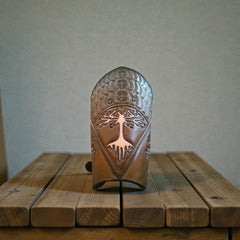 Meisterhafte Handarbeit & Design Jede Armschiene wird aus hochwertigem, braunem Rindsleder gefertigt. Das Highlight ist der detailreich punzierte Baum von Gondor, der stolz auf dem Unterarm prangt. Das umlaufende Schuppenmuster verleiht dem Schutz eine zusätzliche Tiefe und eine authentische, mittelalterliche Ästhetik.