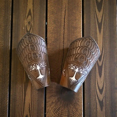 Handgefertigte Lederarmschienen „Baum von Gondor“ – Braunes Rindsleder für LARP, Bogenschießen & Cosplay – Waldläufer Armschutz, Mittelalter & Bushcraft