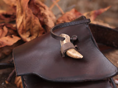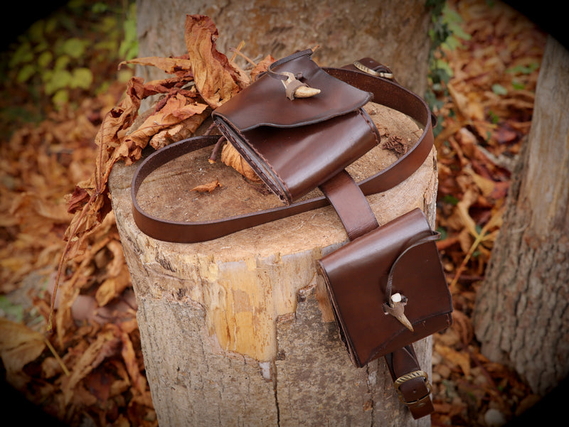 Einzigartige Geweihverschlüsse: Die Verschlüsse der Taschen sind aus poliertem Geweih gefertigt – ein natürliches, robustes und stilvolles Detail, das die Verbundenheit des Trägers mit der Natur unterstreicht.