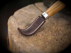 Bei der genähten Lederscheide wurde die traditionelle "Sattlernnaht" verwendet! (In jedem Stich befindet sich ein Knoten innerhalb der zwei Lederteile)
