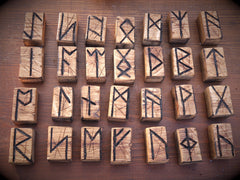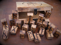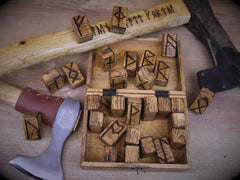 Hochwertig handgeschnitzte Runen aus Eichenholz.