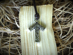 Diese Halskette ist ein echter „Hingucker“ auf allen Mittelalterfesten oder Wikingertreffen. Der Anhänger ist aus legiertem Zink gefertigt, hierbei wurde bewusst auf einen "Feinschliff" verzichtet um eine "kantige" rustikale Form zu schaffen. Die gesamte Anhänger besteht aus Metall, die verstellbare Kette ist aus Leder gefertigt.